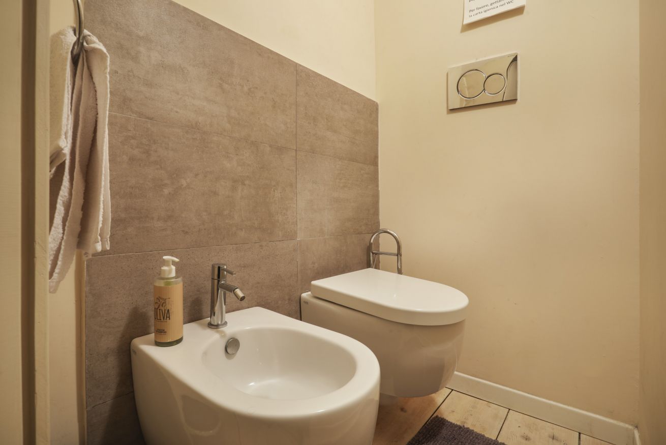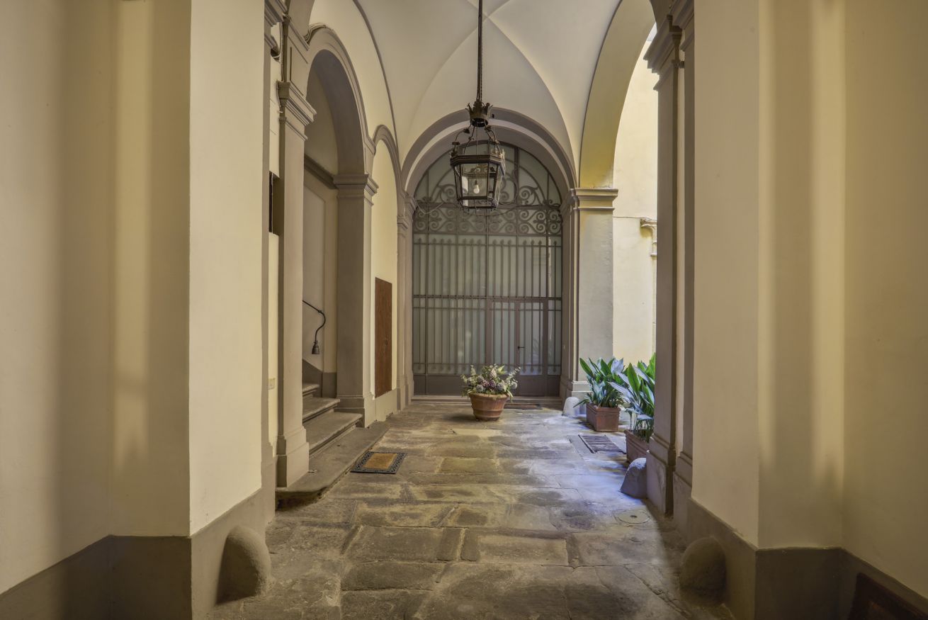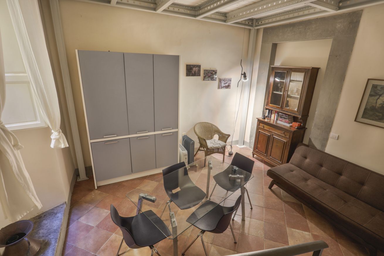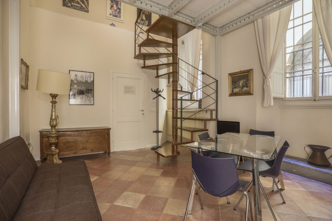 La disposizione interna separa l'area giorno dal reparto notte, rendendo l'appartamento una soluzione pratica e tranquilla per chi desidera soggiornare nel cuore di Firenze, all'interno di un contesto storico di rilievo.