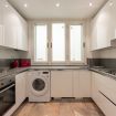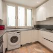 La zona giorno è spaziosa e arredata con gusto moderno, completa di un angolo bar perfetto per rilassarsi dopo una giornata alla scoperta della città. La cucina, ampia e completamente attrezzata, è ideale per preparare qualsiasi pasto, da una colazione veloce a una cena gourmet. Completano l’appartamento due bagni elegantemente decorati, entrambi con una spaziosa doccia walk-in, per un tocco di relax da spa.