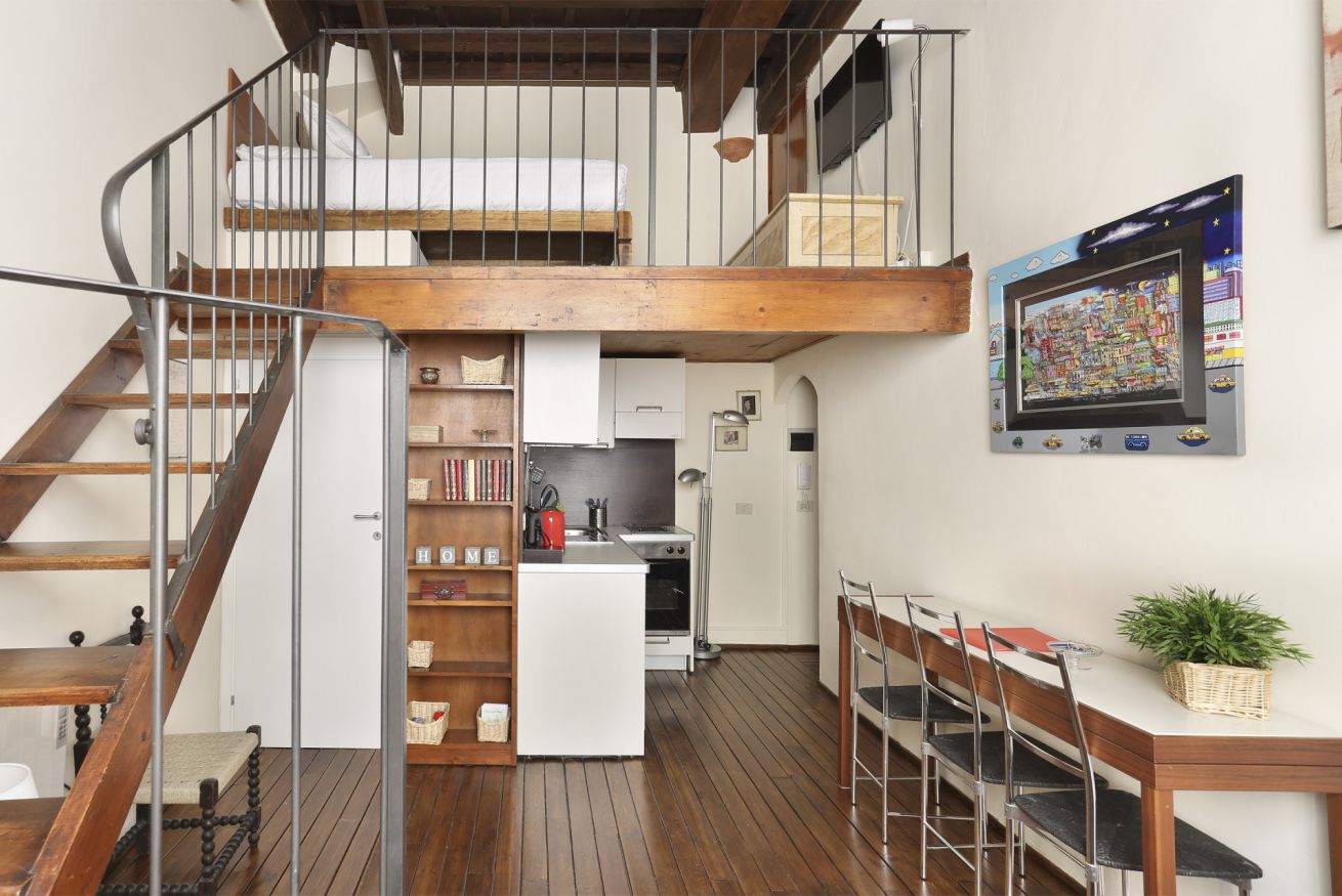 Grazioso monolocale nel cuore di Firenze, tra gli Uffizi e Ponte Vecchio. Luminoso e ben attrezzato, un posto romantico dove riposare durante le pause tra cultura e divertimento.