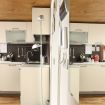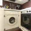 La porta d'ingresso si trova su un piccolo corridoio, lì c'è una cucina completamente attrezzata con frigorifero e forno, con stoviglie, attrezzature da cucina e una lavatrice e asciugatrice.