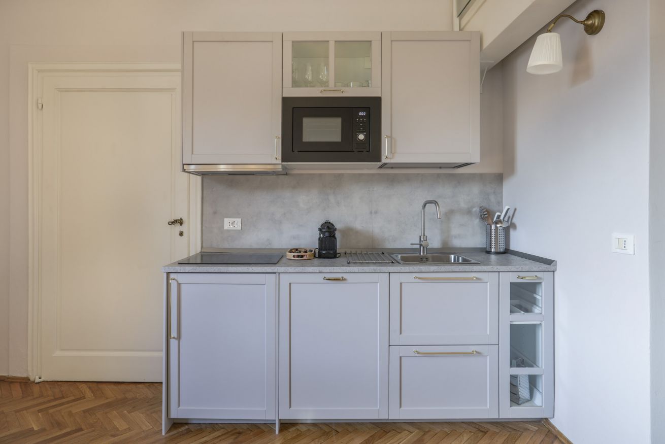 Si prega di considerare che, trattandosi di un palazzo storico vincolato, non è presente l'ascensore; l'appartamento si raggiunge percorrendo la bellissima e ampia scalinata in pietra originale.