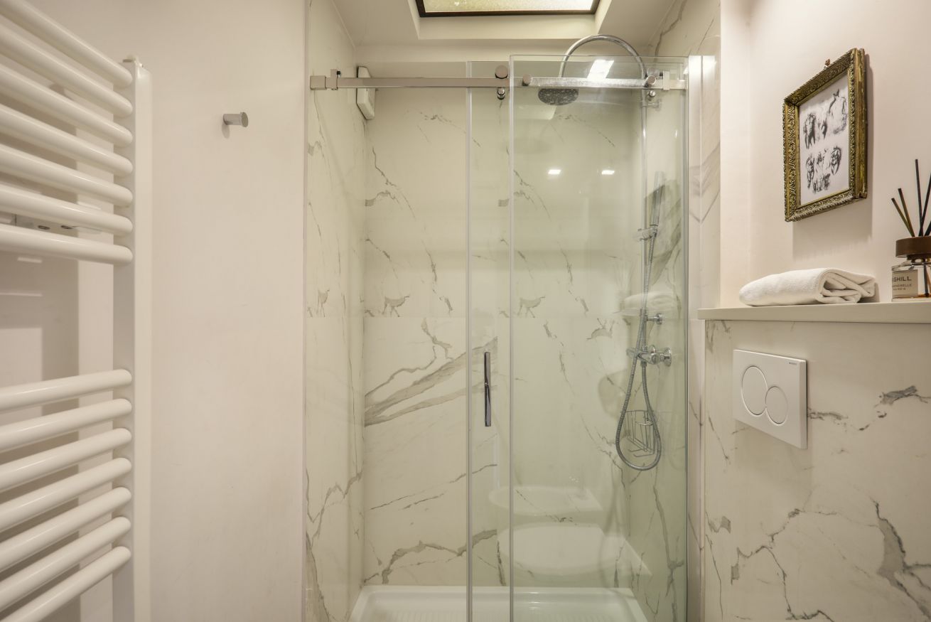 Luminoso e raffinato appartamento situato nel cuore di San Lorenzo, a Firenze. Con una superficie di circa 50 metri quadrati, la proprietà offre una zona giorno confortevole con divano e area pranzo, una cucina moderna completamente attrezzata, un bagno con doccia walk-in e una terrazza privata con vista sui caratteristici tetti del quartiere.