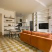 La prima cosa che si vede entrando in soggiorno è il divano arancione trasformabile in divano letto matrimoniale, accanto c'è un tavolo rotondo con sedie di arredo dove sarà un piacere consumare i pasti durante il giorno. È una stanza con molta luce e un perfetto luogo di riposo quando si chiudono le finestre. Dispone di un angolo con poltrona dove godersi un buon libro o un bicchiere di vino durante la pausa. I pavimento è caratterizzato dalla graniglia Liberty originale, rendendo il salotto un ambiante moderno senza tralasciare l’aspetto originale. La cucina ad isola si trova nella stessa area del soggiorno, tuttavia, con spazio sufficiente per essere indipendenti l'uno dall'altro. Realizzata a mano con resina grigia da artigiani locali, la cucina dispone di tutti gli utensili necessari oltre a un piano cottura a induzione; un frigorifero Smeg nero dà all'ambiente un tocco di eleganza. Alla sinistra del salotto si trova il bellissimo bagno in marmo bianco e nero, con doccia a pioggia, perfetto dopo una lunga giornata di passeggiate e shopping. Accanto al bagno si trova la camera, decorata con toni leggeri e foto originali dell'antica Firenze, con un letto king size con un topper che renderà le vostre ore di sonno un vero riposo, due finestre che si affacciano sui tipici cortili interni dei palazzi di Firenze e due armadi, uno aperto ed uno a filo muro.
