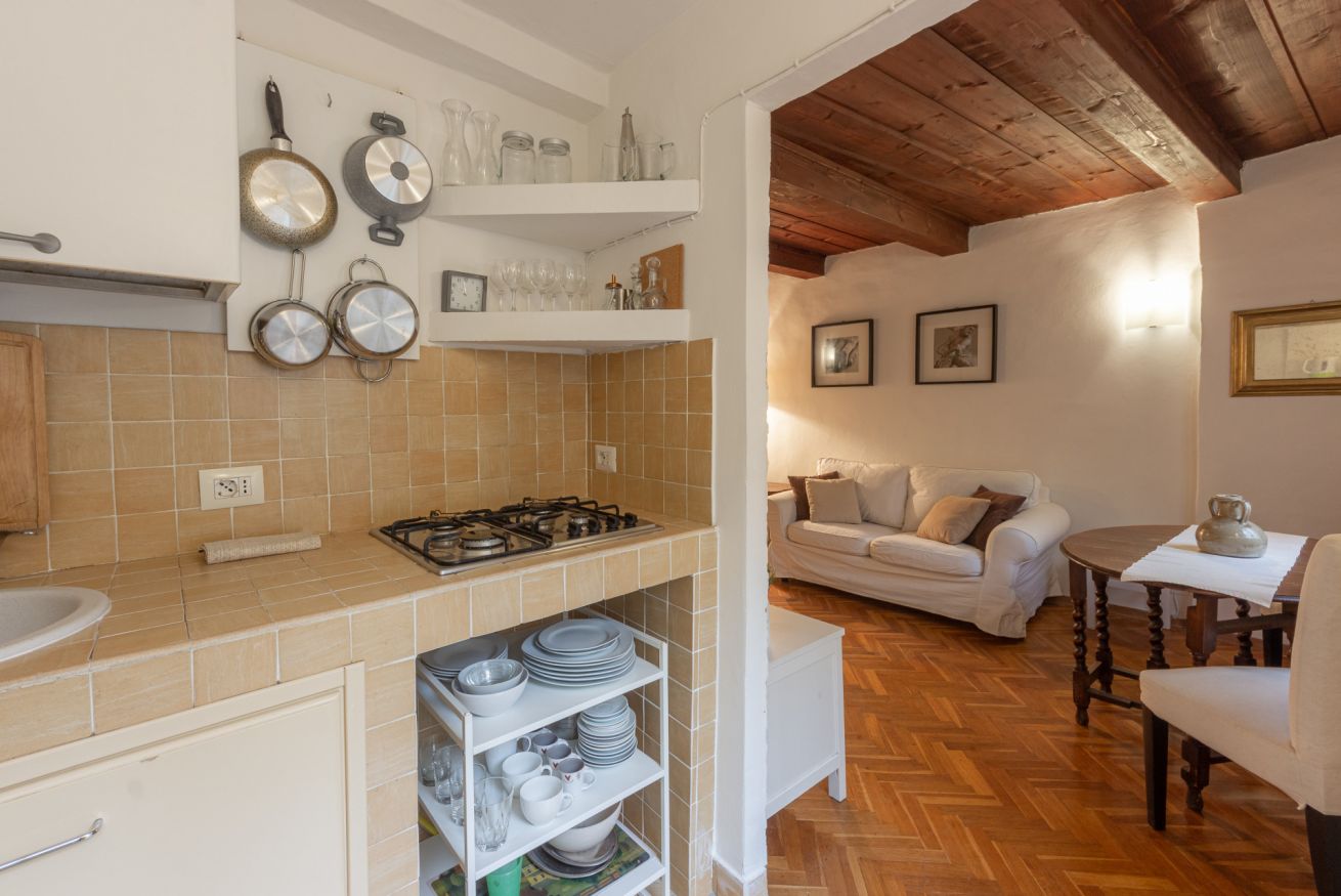 Dall'ingresso dell’appartamento si affaccia nel luminoso soggiorno, con il divano, il tavolo da pranzo e la TV (con firestick) a destra si trova il bagno con la doccia e una nuovissima lavatrice, mentre sulla destra c'è la camera da letto con letto matrimoniale (160x200 cm) e la finestra che si affaccia su via dei Magazzini. Dall'altro lato del soggiorno troverete un angolo cottura completamente attrezzato con tutto l'essenziale per preparare i pasti e l'accesso al terrazzino, ideale per gustare i vostri pasti o un buon bicchiere di vino.