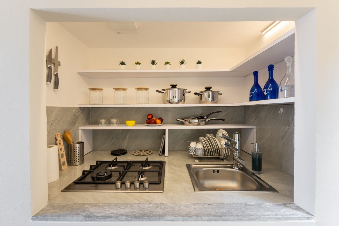 La cucina completamente attrezzata permette di cucinare con facilità ed è dotata di piano a induzione, forno, lavatrice e tutto l’occorrente. Il bagno, moderno e funzionale, offre una spaziosa doccia walk-in e finiture pulite.