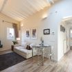 Situato all’ultimo piano di un palazzo storico senza ascensore, l’appartamento si raggiunge salendo circa 100 scalini—una piccola esperienza autentica alla fiorentina. Una volta arrivati, verrete accolti da ambienti luminosi, travi a vista, colori delicati e una sensazione di tranquillità che ripaga immediatamente la salita.