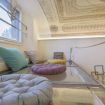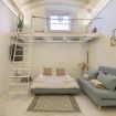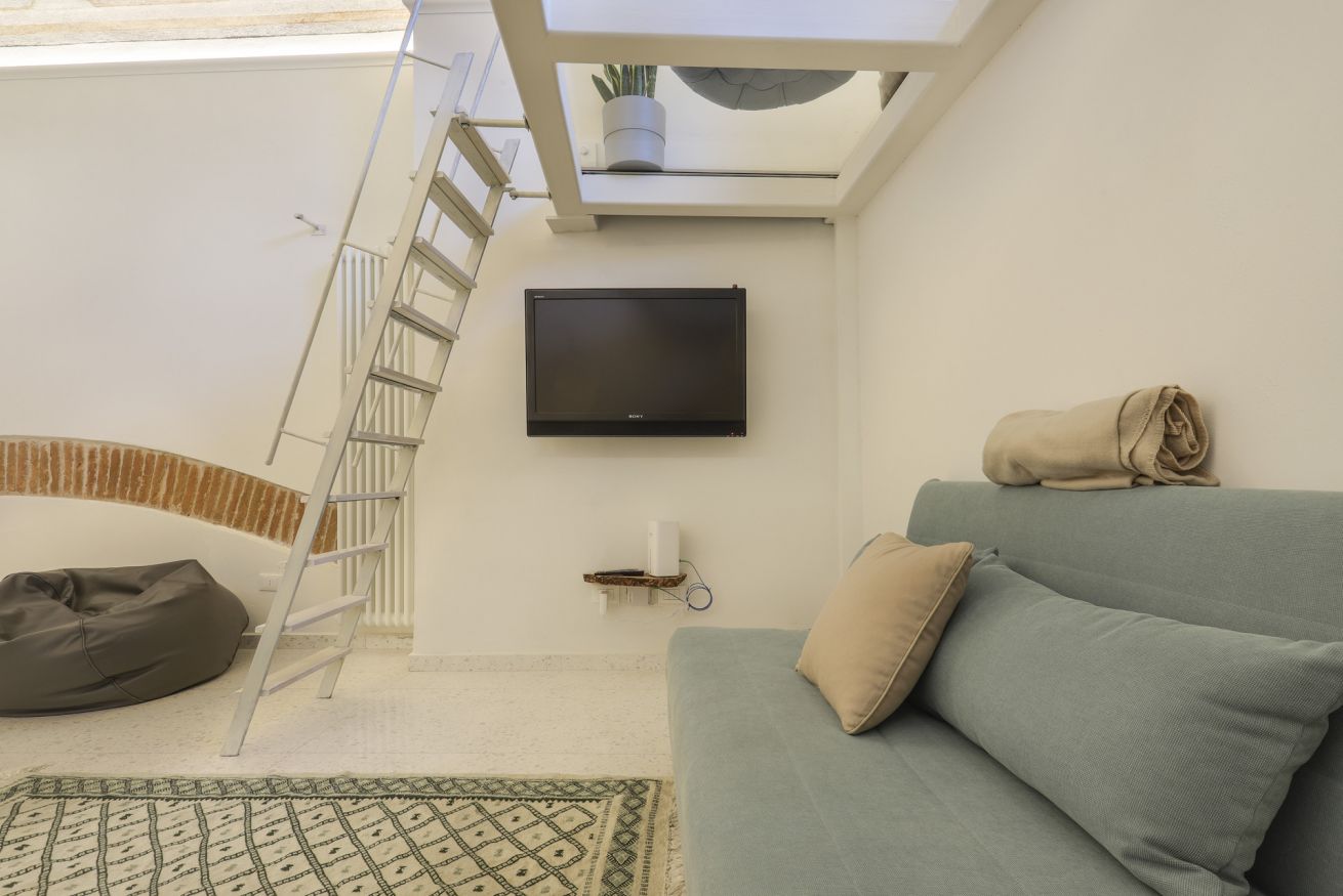 Entrate in uno spazio pratico ed elegante appena varcate la soglia del soggiorno, caratterizzato da un magnifico soffitto a volta adornato con un dipinto classico in stile affresco che cattura l'essenza del patrimonio artistico di Firenze. L'ampio soggiorno include anche un comodo divano letto, ideale per ospitare ulteriori ospiti, e uno spazio soppalcato perfetto per rilassarvi o leggere. Grandi finestre permettono alla luce naturale di illuminare la stanza, migliorando l'atmosfera accogliente.
